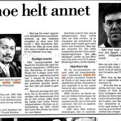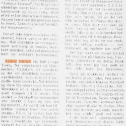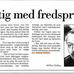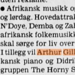 Arthur Gillies pianospilling har blitt beskrevet som uortodoks med store taktskiftninger. Han trakk seg noe tilbake fra Stavangers musikkliv da apartheidregimet ble oppløst, og han besøkte familien i Cape Town.