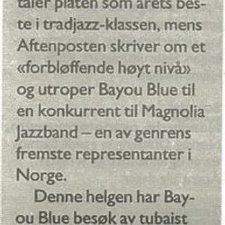 Bayou Blue etablerte seg tidlig blant eliten av Norges tradjazz-band. Bayou Blue har spilt på de fleste norske jazzfestivaler, pluss hatt mange oppdrag i utlandet - ikke minst i Storbritannia.
