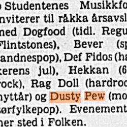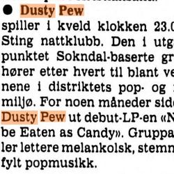 Vokalist Ø. B Haaland skrev majoriteten av tekstene, men musikken ble utarbeidet i felleskap. Dusty Pew var en ambisiøs gjeng.Etter bandet ble oppløst, utviklet det seg videre til Gargoyles og Crane .