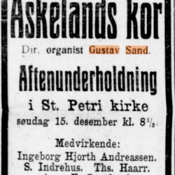 Gustav Sand var en sentral skikkelse innen Stavangers musikkliv, som organist, komponist, kordirigent og musikkpedagog.