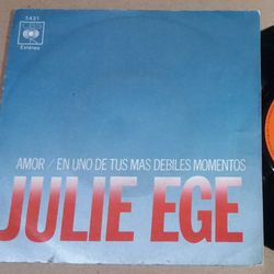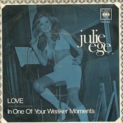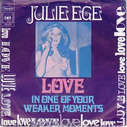 Julie Ege slapp sin første singel i 1971 “In one of your weaker moments” /"Love”, produsert av hennes daværende kjæreste Tony Bramwell.