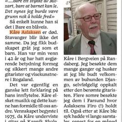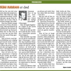 Minneord fra Bjørn Aslaksen (Stavanger Aftenblad)