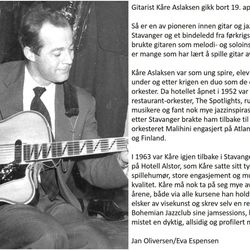 Kåre Aslaksen var en markant person innen Stavangers tidlige jazzmiljø, og gjorde mye for byens musikkliv på 70 – tallet. Mest sannsynlig den første i distriktet til å bruke gitaren som melodi- og soloinstrument.