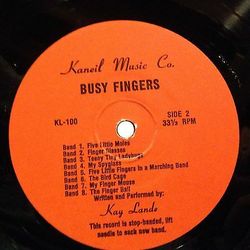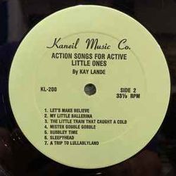 Sanger:Bubbly Time (with Wade Denning)Father, I Thank Thee (with Edna Bettler)For Sleepyheads Only[16]I Know a Game (with Wade Denning)Kay Lande’s ABC 123Kitty KatLet’s go to the Toy ShopLet’s have a PartyLet’s Play SchoolMommy, Come SeeMommy, Please Come Play with MeMy Little Ballerina[My Musical Monkey (with Frank Stanton)Song for Little FolkTennis? Tennis?Trip to Lullaby Land (with Edna Bettler)