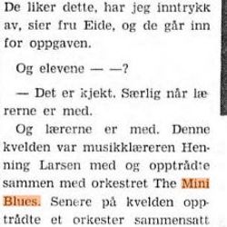 The Mini Blues var et ungdomsband der vokalisten taklet både svensk og engelsk på internasjonalt nivå. Dette var et humørfylt og høystspillende poporkester. Guttene hadde utstyr for 15000 kr.