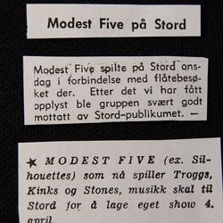 1. april 1967 hadde Modest Five et portrettintervju i Haugesunds Dagblad hvor medlemmene kommenterte andre lokale grupper som Group, Rebells, Moonspinners, Spacemakers, Enterprises,2nd Generation, samt seg selv. De kom til stikk mot noen av bandene, blant annet sa de at Rebells musikk var noe utdatert, noe karmøybandet ikke tok greit. Dette førte til en liten konflikt i lokalpressen.