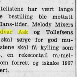 Oddvar Ask var ofte utøver/kapellmester ved restauranten Place Pigalle i Victoria Hotell og Inter.Han hadde en egen gruppe som gikk under navnene Oddvar Ask Combo/Orkester/Oddvar Ask og Hans Askekladder. Spilte også med grupper som Melody Mixers og Manhattan Bar Trio. Opptrådte gjerne med Åge Jensen og Kjell Haave. Var lenge kapellmester ombord på Stavangerfjord.