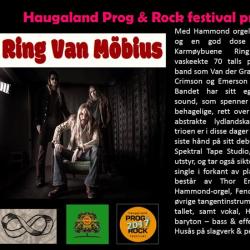 Med Hammondorgel fra 68, fuzz bass og en god dose nostalgi, spiller Karmøybuene Ring van Möbius vaskekte 70 talls-prog, inspirert av band som Van der Graaf Generator, King Crimson og Emerson Lake & Palmer.
