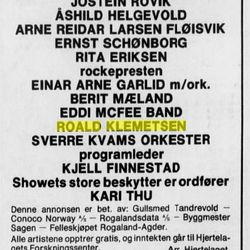 Roald Klemetsen deltok i rockekonkurransen på Bjergsted 7. juni 1958, men måtte gi tapt til Kjell Finnestad. Han var en periode en populær slagersanger.
