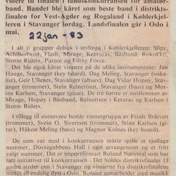 Dessverre så gikk arrangøren av NM i Rock 1983 konkurs så det ble aldri noen Oslo tur på Stormriders for å delta i landsfinalen. Musikkstilen til Stormriders må karakteriseres som progressiv rock. En særegen sound og uttrykk ble det, spesielt med 2 trommeslagere og mye dobling av gitarer.