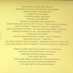 Besetning:Svein Tang Wa - sang, låtskriverReidar Larsen - pianoArne Skage jr. - strengeinstrumenterJohan Egdetveit - trekkspillKnut Wedø - blokkfløyteStein Inge Brækhus - trommer/perkusjonTor Mathisrud - bass på Gitaren, Det va du som ba meg komma, Ta på meg, Smagen av honning og hav, Nå drysse snøen og Han BårdØystein Eldøy - bass på Mor sin arm, På flukt, Domt av meg å ble voksen, Nana te tennene, Tankar om Tor og Liv og Snart nokBritt-Synnøve Johansen - kor på Gitaren, Nana te tennene, Tankar om Tor og Liv og Snart nokHanne Vasshus - kor på Nana te tennene, Tankar om Tor og Liv og Snart nokRandi Tytingvåg - kor på Nana te tennene, Tankar om Tor og Liv og Snart nokØvrigePer Ravnaas - tekniker, mixingThor Legvold - masteringHarald Grøttem - fotografSnorre Log Skage - illustrasjonRebecca Reimers - coverdesignSanger: