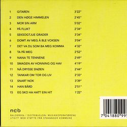 «Gitaren» (Svein Tang Wa/Johan Egdetveit)«Den høge himmelen»«Mor sin arm»«På flukt»«Seksogtjue grader»«Domt av meg å ble voksen»«Det va du som ba meg komma» (Tang Wa/Tor Mathisrud)«Ta på meg»«Nana te tennene»«Smagen av honning og hav»«Nå drysse snøen»«Tankar om Tor og Liv»«Snart nok»«Han Bård»«Eg sko hatt ein hit»