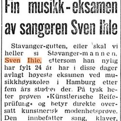 Sven Ihle ble sagt å ha en velutviklet, behagelig og kraftig barytonstemme, med skolert teknikk. I Tyskland fikk han stor suksess, og opptrådte blant annet på TV. Han tok statseksamen med rett til å virke som sanglærer Som cellist fikk Ihle gode attester fra flere dirigenter og instruktører. Han var blant annet flere år å finne i Stavanger byorkester.