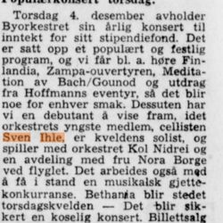 I 1958 steppet han inn for sin bror Odd i en forestilling med Mandskoret av 1914, som tok plass i Haugesund. Her beviste han seg som en svært lovende sanger, og fikk god omtale av lokalpressen. I tillegg til å opptre med koret, fremførte han fem Brahms-stykker akkompagnert av pianist Leif Bendix Jørgensen. I 1961 holdt han konsert med Sandnes Orkesterforening i Julebygda Kapell, med energiske Kåre Opdal som dirigent. Året etter deltok han på et av Musikkens Venner arrangementer, og fremførte åtte Schubert-lieder. I 1968 debuterte han ved Aulaen i Oslo, til store lovprisninger fra kritikerne.