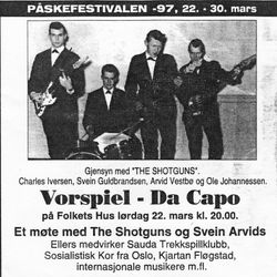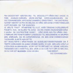 Fra skolestart høsten 1961 til skoleslutt våren 1963 hadde guttene: Charles Iversen, Arvid Vestbø, Svein Gulbrandsen og Ole Johannessen mye glede sammen i orkesteret The Shotguns. Navnet var hentet fra melodien til en av deres store forbilder Cliff Richard og The Shadows. De spillte "fast" på møtene til A.U.F. hver torsdag i kjelleren på Folkets hus, og ellers til dans og ved andre anledninger både i Sauda og distriktene rundt. Deres veier skiltes våren 1963. I Februar 1997 ringte Bernt Lindekleiv til medlemmene av gruppen med spørsmål om en gjenforening, og med sine overbevisende talegaver, klarte han dette. Det resulterte i opptaket gjort med god hjelp av Stein Erik Gulbrandsen. Spor 10 og 11 er tatt opp av NRK i 1962.