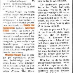 Wasted Youth spilte på Checkpoint Charlie , ungdomshuset Zonen, Folkets Hus I Sauda, samt i Bergen på Hulen og Garage.